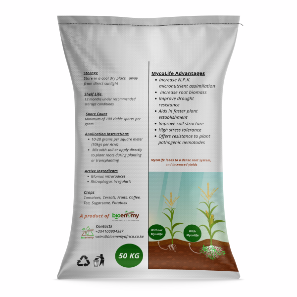 MycoLife Biofertilizer harnesses the natural symbiosis between Arbuscular Mycorrhizal Fungi (AMF) and plant roots. Our premium formulation contains selected, robust AMF strains (Glomus intraradices & Rhizophagus irregularis) that colonize the plant roots, significantly improving nutrient and water uptake. Designed to work in tandem with your crops’ natural growth cycles, MycoLife enables healthier, more resilient plants while reducing the need for synthetic chemicals.